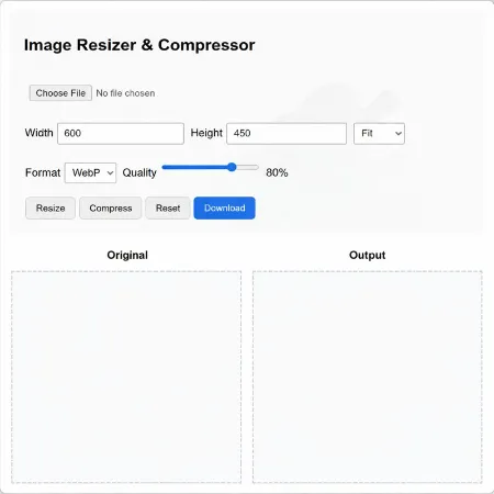 Large image files can slow down websites and make images harder to share. This image resizer and compressor is designed to help reduce image size quickly while keeping good visual quality. The tool works directly in your browser and does not upload images to any server.